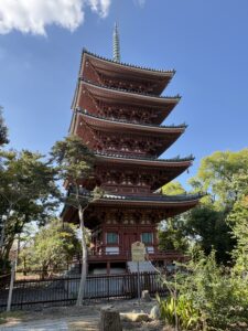 朱色がまぶしい五重塔は昭和50年に完成し、塔高33mあり、とても見応えがあります。